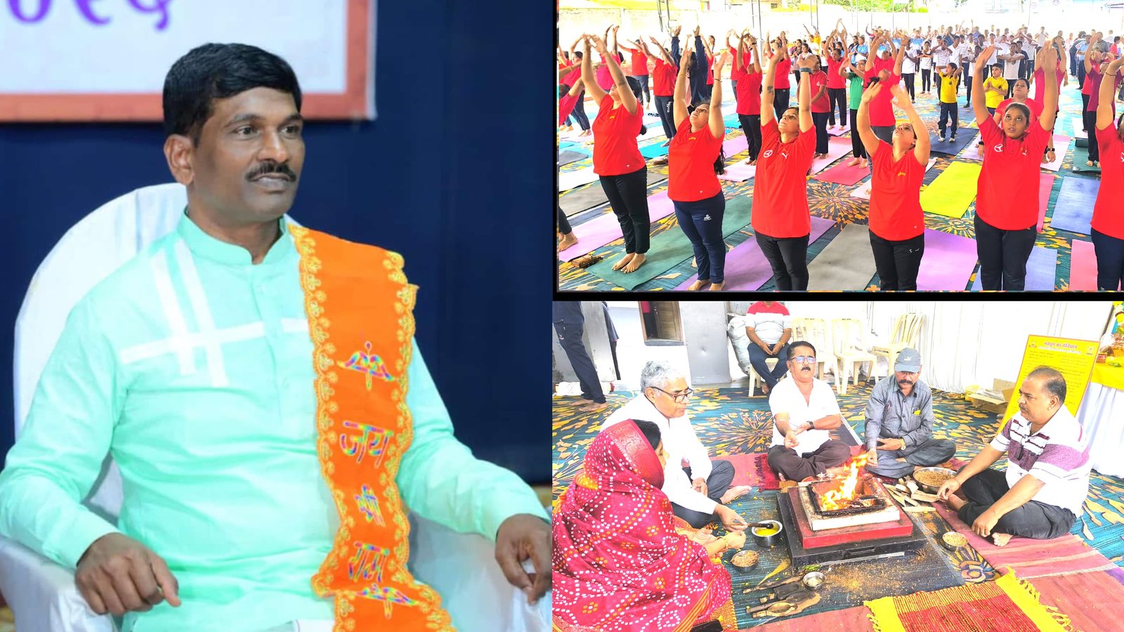 इचलकरंजी : जागतिक योग दिनानिमित्त योगाचार्य संगु गुरुजी यांच्या मार्गदर्शनाखाली इचलकरंजीत सूर्योदयापासून सूर्यास्तापर्यंत १५०० नागरिकांनी सहभाग घेत १ लाख सूर्यनमस्कार घातले.गजानन महाराज गुरुजी यांनी सलग दोन तास सूर्यनमस्कार घातले.राजेंद्र बोहरा यांनी सर्वाधिक ५०४ सूर्यनमस्कार घातले.महेश क्लब ऑफ इचलकरंजी व एसएसवायएस परिवार यांच्या संयुक्त विद्यमाने एसएसवायएसचे प्रवर्तक संगु गुरूजी चॅरिटेबल ट्रस्टचे प्रमुख योगाचार्य संगु गुरूजी यांच्या मार्गदर्शनाखाली रविवारी सकाळी ६ वाजता क्लबचे अध्यक्ष ओमप्रकाश चांडक, डी.एम.कस्तुरे, मुरलीधर बाहेती, गजानन महाजन-गुरूजी, सुरेश जाजू यांच्या उपस्थितीत दीपप्रज्वलन करून सूर्यनमस्कारास आणि गायत्री यज्ञास प्रारंभ सूर्यास्त ७.१७ वाजेपर्यंत दिवसभर १५०० विद्यार्थी, नागरिक, सादक आदींनी सुमारे १ लाख सूर्यनमस्कार घातले.या सूर्यनमस्कार उपक्रमामध्ये दिवसभरात खंड पडू देण्यात आला नाही. सलग उपक्रम दिवसभर सुरू राहिले.या उपक्रमामध्ये सहभाग घेतलेल्यांना प्रमाणपत्र, सूर्यनमस्काराचे कॅलेंडर व अल्पोहार देण्यात आला. याचा समारोप आयुक्त पल्लवी पाटील, भगतराम छाबडा, सत्यनारायण सारडा, नितीन धूत, भीमकरण छापरवाल, राजाराम चांडक, रामगोपाल मालाणी, आदींच्या उपस्थितीत झाला. श्रीकांत मंत्री यांनी सूत्रसंचालन व सतीशकुमार काबरा यांनी आभार मानले.
