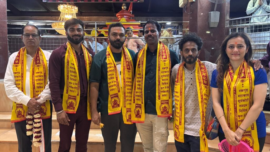 मुंबई : रेडबड मोशन पिक्चर्स प्रस्तुत ‘अवकारीका’ हा चित्रपट येत्या १ ऑगस्ट रोजी सर्वत्र प्रदर्शित होणार आहे. या पार्श्वभूमीवर चित्रपटाच्या टीमने प्रभादेवी येथील श्री सिद्धिविनायक मंदिरात जाऊन बाप्पाचे दर्शन घेतले आणि चित्रपट यशस्वी होण्यासाठी चरणी साकडे घातले.