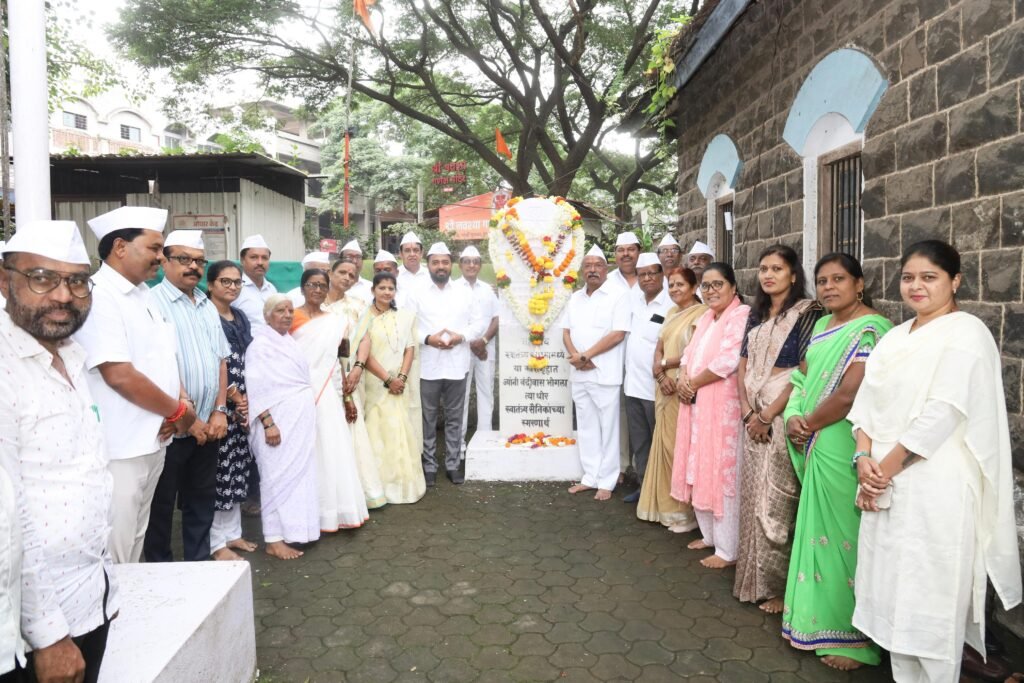 इचलकरंजी : ऑगस्ट क्रांती दिनानिमित्त भारतीय जनता पार्टीच्या वतीने क्रांतीवीरांना अभिवादन करण्यात आले. येथील पुरवठा कार्यालयाच्या प्रांगणातील स्मृती स्तंभास आमदार राहुल आवाडे व माजी वस्त्रोद्योग मंत्री प्रकाश आवाडे यांच्या हस्ते पुष्पहार अर्पण करून अभिवादन करण्यात आले. यावेळी जयघोषांनी संपूर्ण परिसर दणाणून गेला.९ ऑगस्ट हा भारताच्या स्वातंत्र्य चळवळीतील ऐतिहासिक टप्पा असून, याच दिवशी सुरू झालेल्या आंदोलनामुळे ब्रिटिशांना भारत सोडावा लागला. देशासाठी प्राणांची आहुती देणाऱ्या क्रांतीवीरांच्या स्मरणार्थ हा दिवस साजरा केला जातो.या कार्यक्रमाला इचलकरंजी शहर पूर्व मंडल अध्यक्ष श्रीरंग खवरे, ग्रामीण मंडल अध्यक्ष बाळासाहेब माने, अहमद मुजावर, बाळासाहेब कलागते, महावीर कुरुंदवाडे, चंद्रकांत इंगवले, अनिल कुडचे, राजू बोंद्रे, शेखर शहा, नरसिंह पारीक, एम. के. कांबळे, प्रमोद बचाटे, सुखदेव माळकरी, चंद्रकांत कोष्टी, वसंत येटाळे, मारुती पाथरवट, किशो पवार, राजू दरीबे, बजरंग कुंभार, सर्जेराव हळदकर, सचिन माळी, बापू घुले, प्रमोद काडाप्पा, नजमा शेख, मंगल सुर्वे, सुवर्णा लाड, सीमा कमते, सपना भिसे, तुळसाबाई काटकर, जयश्री शेलार, माधवी देसाई, विद्या लवटे आदींसह पदाधिकारी व कार्यकर्त्यांची उपस्थिती होती.