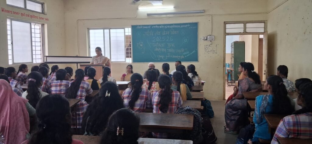 यावेळी महाविद्यालयाचे प्राचार्य डॉ. बाबासाहेब दुधाळे यांनी अध्यक्षीय मनोगत व्यक्त करताना सामाजिक बांधिलकी जपत विधायक स्वरूपात गणेशोत्सव कसा साजरा करावा यावर मार्गदर्शन केले.कार्यक्रमास एन.एस.एस. कार्यक्रम अधिकारी डॉ. धीरज शिंदे, डॉ. प्रियांका कुंभार, ज्युनिअर विभागाच्या प्रा. सोनाली बोरगावकर, प्रा. धोत्रे यांच्यासह विद्यार्थीनी मोठ्या संख्येने उपस्थित होत्या.