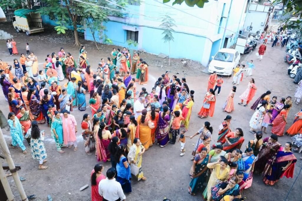 कार्यक्रमाच्या शेवटी महिलांना खिरापत वाटप करून स्नेहभोजनाचा आनंद घेण्यात आला. महिलांनी एकमेकींना पारंपरिक खाद्यपदार्थ वाटत आनंद व्यक्त केला. संपूर्ण वातावरणात स्नेह, संस्कृती आणि आनंदाचा सुंदर संगम पाहायला मिळाला.