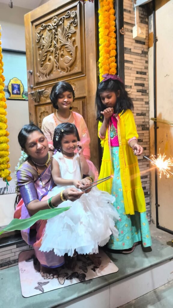 महिलांनी पारंपरिक पोशाख परिधान करून मंत्रोच्चारांसह पूजन केले. काही ठिकाणी सामूहिक आरती स्पर्धा, देवी स्तोत्र पठण, तसेच सांस्कृतिक कार्यक्रमांचे आयोजन करण्यात आले. देवीच्या मूर्तींना सोन्याच्या व चांदीच्या दागिन्यांनी, फुलांनी आणि सुगंधी दिव्यांनी सजवण्यात आले होते. लक्ष्मीपूजनानंतर एकमेकांना शुभेच्छा देत नागरिकांनी गोडधोड फराळ व मिठाईंचा आस्वाद घेतला. लाडू, चकली, करंजी, शेव, अनारसे यांचा सुगंध घराघरात दरवळत होता. लहान मुले फटाके फोडत आनंद साजरा करत होती तर वडील मंडळी एकमेकांना शुभेच्छा देत सौहार्दाचे बंध दृढ करत होती.