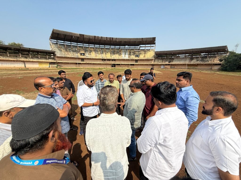 इचलकरंजी : इचलकरंजीतील भव्य असे राजाराम मैदान आवश्यक त्या सर्व सुविधांसह अत्यंत चांगल्या दर्जाचे करण्यासह त्याचा लाभ शहरी व ग्रामीण भागातील उदयोन्मुख क्रिकेटपटूंना मिळावा यासाठी महानगरपालिकेचे राजाराम स्टेडीयम विकसित करण्यासाठी आमदार राहुल आवाडे प्रयत्नशील आहेत. त्याच अनुषंगाने महाराष्ट्र क्रिकेट असोसिएशन (एमसीए) चे सेक्रेटरी कमलेश्वर पिसाळ यांच्यासोबत शुक्रवारी प्रत्यक्ष भेट देऊन मैदानाची पाहणी करण्यात आली. प्रदीर्घकाळापासून विकासासाठी प्रलंबित राजाराम स्टेडीयमचे रुपडे या माध्यमातून पालटणार असलेने क्रिकेटेप्रेमींमधून समाधान व्यक्त होत आहे.