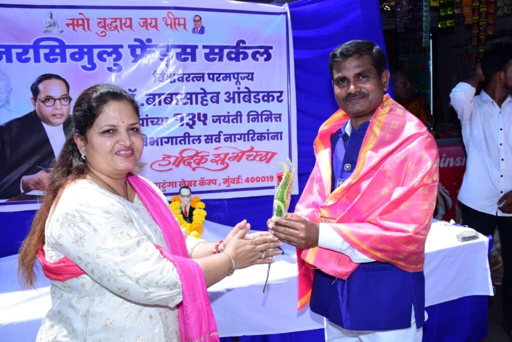 मुंबई : प पू विश्वरत्न डॉ बाबासाहेब आंबेडकर यांचा बालेकिल्ला मानल्या जाणाऱ्या माटुंगा लेबर कॅम्प येथे भीम जयंती नरसिमुलु फ्रेंड्स सर्कल यांच्या वतीने 135 वी भीम जयंती मोठ्या उत्साहात संपन्न झाली .